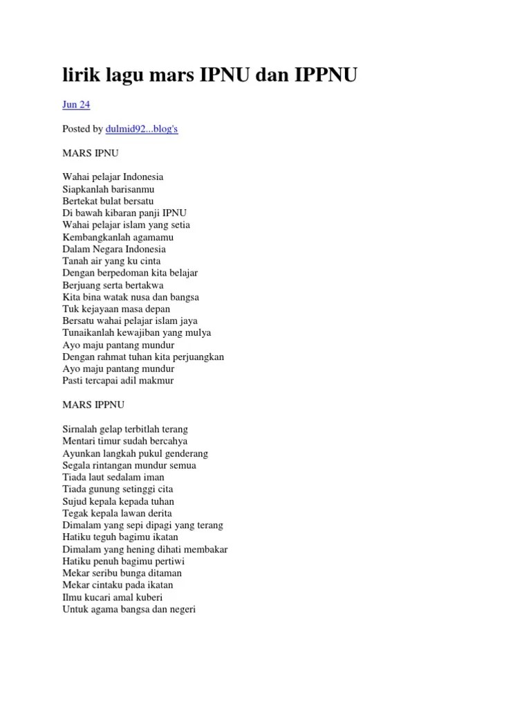 Bb eb f d gm c g cm a gbm e bm] ➧ chords for lirik lagu mars ipnu dan ippnu (ikatan pelajar nahdlatul ulama & ikatan pelajar putri nu) with song key, bpm, . Lirik mars ipnu, ippnu, gp. Sebagai salah satu organisasi yang . Di bawah kibaran panji ipnu Menjebol membangun…ayo ora et labora.
